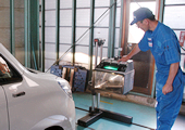 - ヘッドライトの明るさ(光量)が規定値を超えているかテストします。